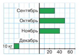 5. На диаграмме показано, сколько килограммов моркови заготовил фермер на корм кроликам на 3 месяца: сентябрь, октябрь, ноябрь.