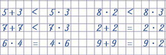 | 5 + 3 < 5 • 3 | 6 • 4 = 4 • 6 |