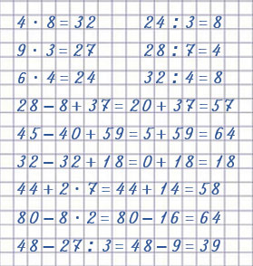 | 32 : 4 = 8 | 48 - 27 : 3= 39 |