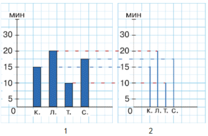 На диаграмме (рис. 1) показано, сколько времени каждая из четырёх одноклассниц затрачивает на дорогу от дома до школы.