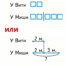2) У Вити 2 машинки, а у Миши на 3 машинки больше, чем у Вити. Сколько машинок у Миши?