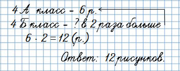 На выставке было 6 рисунков учеников из 4 А класса, а рисунков учеников из 4 Б в 2 раза больше. Сколько было на выставке рисунков учеников из 4 Б класса?