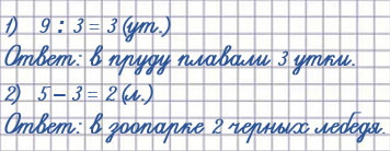 2) В зоопарке 5 белых лебедей, а чёрных на 3 меньше. Сколько чёрных лебедей в зоопарке?