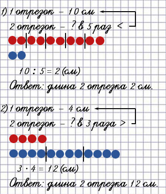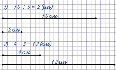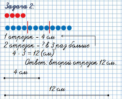 2) Длина первого отрезка 4 см, а длина второ­го в 3 раза больше.