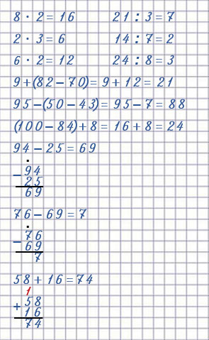 24 : 8 = 3 58 + 16 = 74