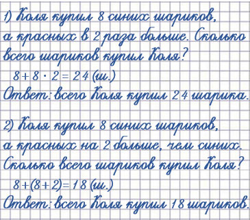 Если в задаче есть слова «в ... раз больше», то задача решается умножением.