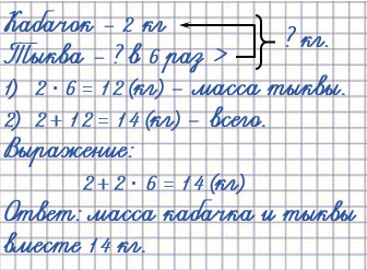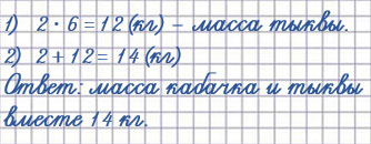 3. Масса кабачка 2 кг, а масса тыквы в 6 раз больше. Чему равна масса кабачка и тыквы вместе?