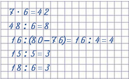 7 • 6 = 42  48 : 6 = 8 16 : (80 - 76) = 4