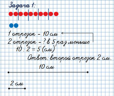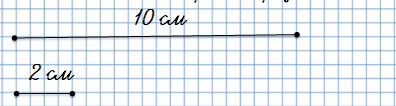 1) Длина первого отрезка 10 см, а длина вто­рого в 5 раз меньше.