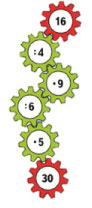 8 • 2 = 16 9 + (8 2- 70) = 21