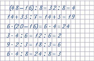 Вспомни порядок  выполнения действий при нахождении значения числовых выражений со скобками и без них.