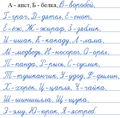 Попробуйте придумать названия зверей и птиц, начинающиеся на разные буквы, и расположите их в алфавитном порядке. Поиграйте.