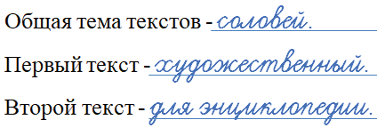 Первый текст является художественным, поскольку в нём соловей описывается не как представитель рода, не называются приметы его внешности, не описываются повадки и т. п.; текст представляет собой обращение автора к птице.