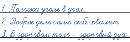 1. Положи уголь в угол. 2. Доброе дело само себя хвалит. 3. В здоровом теле - здоровый дух.