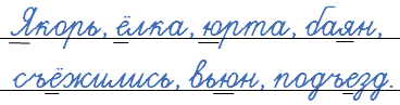 Якорь, мята, ёлка, лётчик, юрта, люлька, баян, съёжились, вьюн, подъезд, летать.