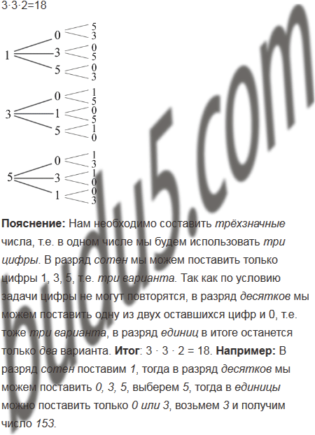 Вспомните, какие числа называются трёхзначными. Повторите тему "Комбинаторные задачи" в нашем справочнике.