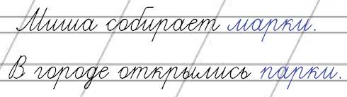 Объясним значения слов: марказнак оплаты почтовых и некоторых других сборов в виде маленькой четырёхугольной бумажки с изображениями и обозначением цены; парк - большой сад или насаженная роща с аллеями, цветниками и пр.