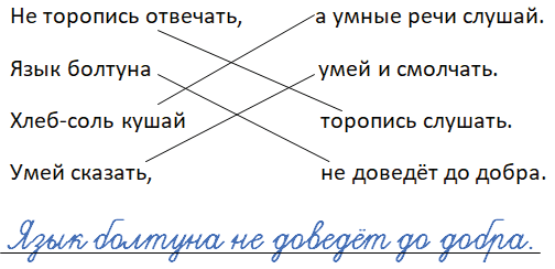 Прочитайте. Соедините линией части каждой пословицы. Объясните смысл любой из них.