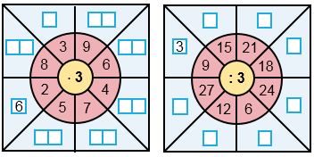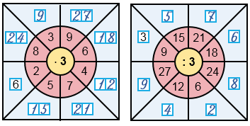 2) Число из большого круга делим на 3.