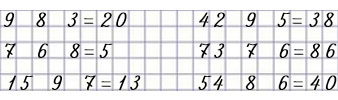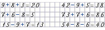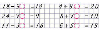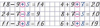37. Запиши пропущенные числа и заполни кружки знаками действий «+» и «—» так, чтобы получились верные равенства.