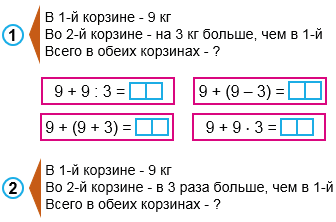 Если в задаче есть слова «на... больше», то задача решается сложением.