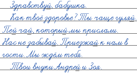 Прочитайте письмо. Спишите, расставляя недостающие знаки препинания в конце предложений. Подчеркните в словах букву й.