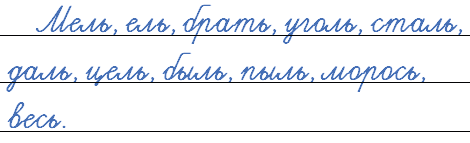 Чтобы на письме показать, что последний звук в словах упражнения мягкий, необходимо в конце слова написать букву ь.