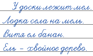 У доски лежит мел. Лодка села на мель. Витя ел банан. Ель - хвойное дерево.