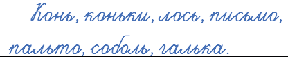 Кон.., кон..ки, лос.., пис..мо, пал..то, собол.., гал..ка.
