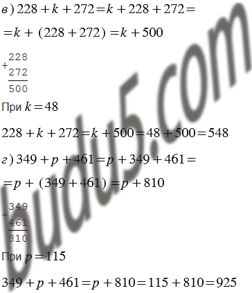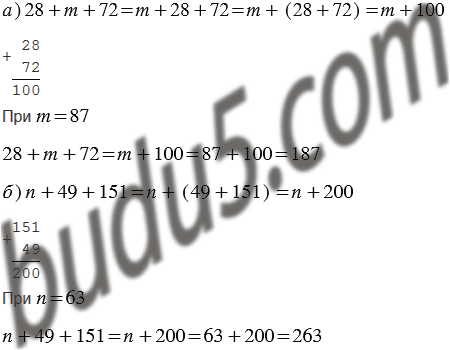 Вспомните свойства сложения натуральных чисел. Повторите тему "Числовые и буквенные выражения" в нашем справочнике.