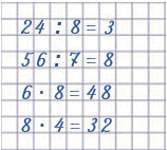 | 7 • 8 = 56 | 64 : 8 • 7 = 56 |
