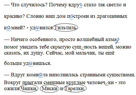 — Что случилось? Почему вдру_ стало так светло и красиво? Словно наш дом п_строен из драгоценных к_мней? - уд_вился Тильтиль.