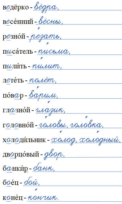 Поставьте в словах ударение. К каждому слову подберите проверочное слово: либо найдите однокоренное слово, либо измените форму данного слова.