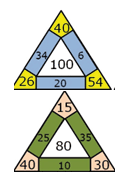 1) 26 + 34 + 40 = 60 + 40 = 100