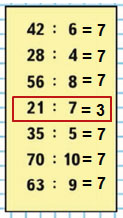 21 : 7 = 3 - лишнее, потому что остальные результаты равны 7.