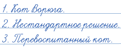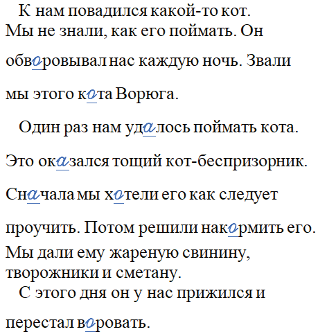 Один раз нам уд..лось поймать кота. Это ок..зался тощий кот-беспризорник. Сн..чала мы х..тели его как следует проучить. Потом решили нак..рмить его. Мы дали ему жареную свинину, творожники и сметану.