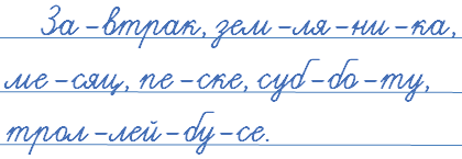 За-втрак, зем-ля-ни-ка, ме-сяц,