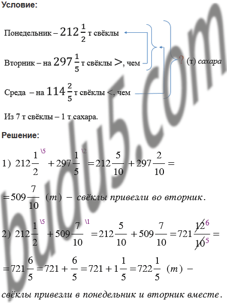 т меньше, чем во вторник и понедельник вместе. Из 7 т свёклы получается 1 т сахара. Сколько сахара получится из привезенной свёклы?