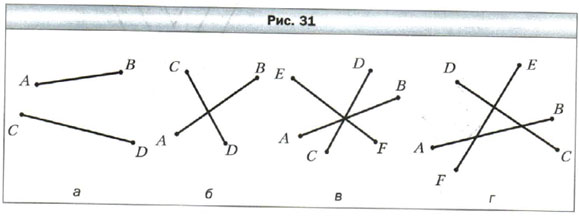 Какое наименьшее количество точек надо отметить на отрезках, изображённых на рисунке 31, чтобы на каждом из них было две отмеченные точки, не считая концов отрезков?
