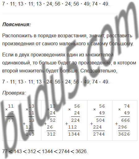 Не выполняя умножения, расставьте в порядке возрастания произведения: