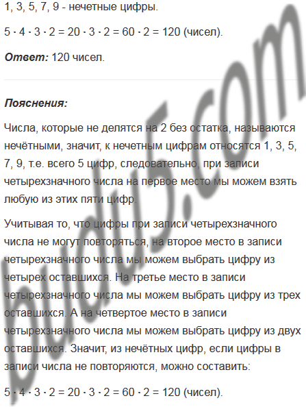 Сколько четырёхзначных чисел можно составить из нечётных цифр, если цифры в записи числа не повторяются?