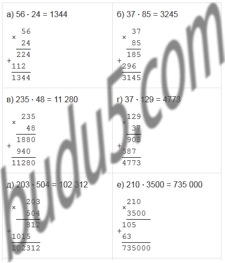 а) 56 · 24; б) 37 · 85; в) 235 · 48; г) 37 · 129; |