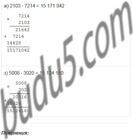 д) 203 · 504; е) 210 · 3500; ж) 2103 · 7214; з) 5008 · 3020. |