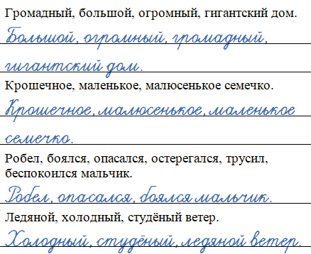 Расположите синонимы по степени возрастания признака. Запишите их в новом порядке.