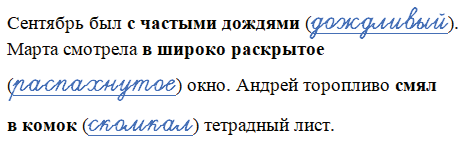 Сентябрь был с частыми дождями (___________) . Марта смотрела в широко раскрытое (_________) окно. Андрей торопливо смял в комок (________) тетрадный лист.