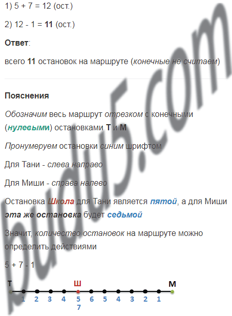Обратите внимание, маршрут автобуса с остановками можно изобразить отрезком. Конечные остановки примите за нулевые остановки.