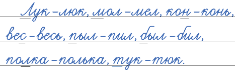 Угол, мал, лук, мол, кон, вес, пыл, был, полка, тук.
