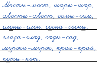 М..сты - мост, ш..ры - шар, хв..сты - хвост, с..мы - сом, сл..ны - слон, с..сна - сосны, гл..за - глаз‚ с..ды - сад, м..ржи - морж, кр..я - край, к..ты - кот.