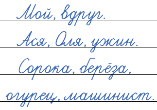 Ася, Оля, мой, ужин, вдруг, сорока, берёза, огурец, машинист.