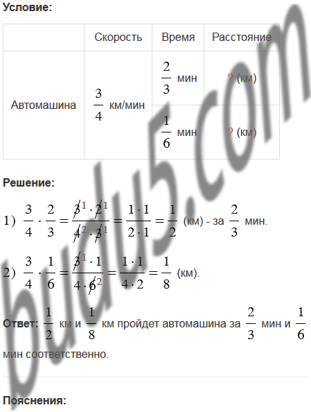Автомашина движется со скоростью  км/мин. Какой путь пройдет автомашина за  мин; за  мин?
